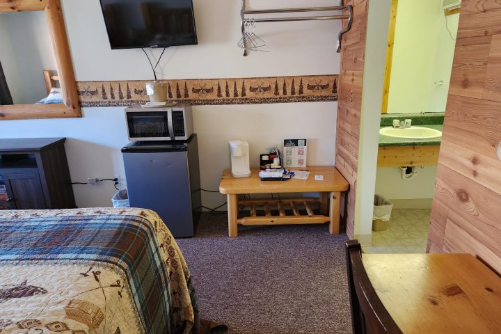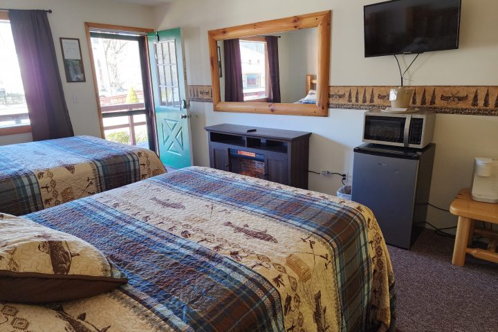 Plenty of room to roam and rustic log furnishings, for that mountain cabin vibe, are part of the Ohiopyle Suites Condominium experience. Two separate bedrooms allow you to separate the sleeping area from the common areas. A convenient kitchen and dining area make in-room eating and socializing easy. The spacious common area with electric fireplace sets the mood for reliving the day’s adventures or a romantic evening in the mountains.